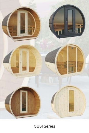Capra outdoor saunas are coming directly from our manufacture. Outdoor saunas are small in different shapes and designed for relaxation and wellness, typically located in gardens, near lakes, or in backyard spaces. Often made of thermowood, such as pine or nordic spruce, which is durable and retains heat well. Outdoor saunas come in various styles, including traditional cabins, barrel-shaped designs, and modern, glass-fronted cube models, blending functionality with aesthetic appeal. To use an outdoor sauna, you heat it using an electric heater or wood-burning stove. Once the sauna reaches the desired temperature (usually between 150-195°F or 65-90°C), you can step inside, sit on the wooden benches, and let the heat soothe your muscles and detoxify your body. Many people enjoy combining sauna sessions with cool-down periods outside or a refreshing dip in a nearby lake or cold tub for a revitalizing experience.